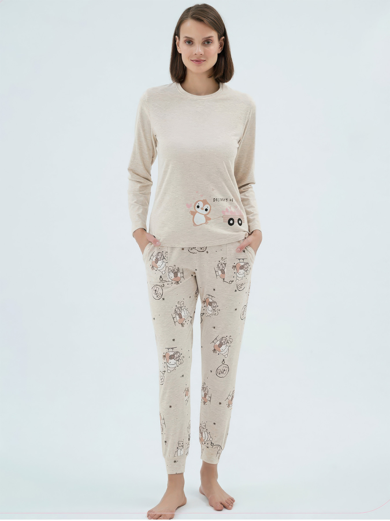 Хлопковый домашний комплект с длинным рукавом SEVIM 14968