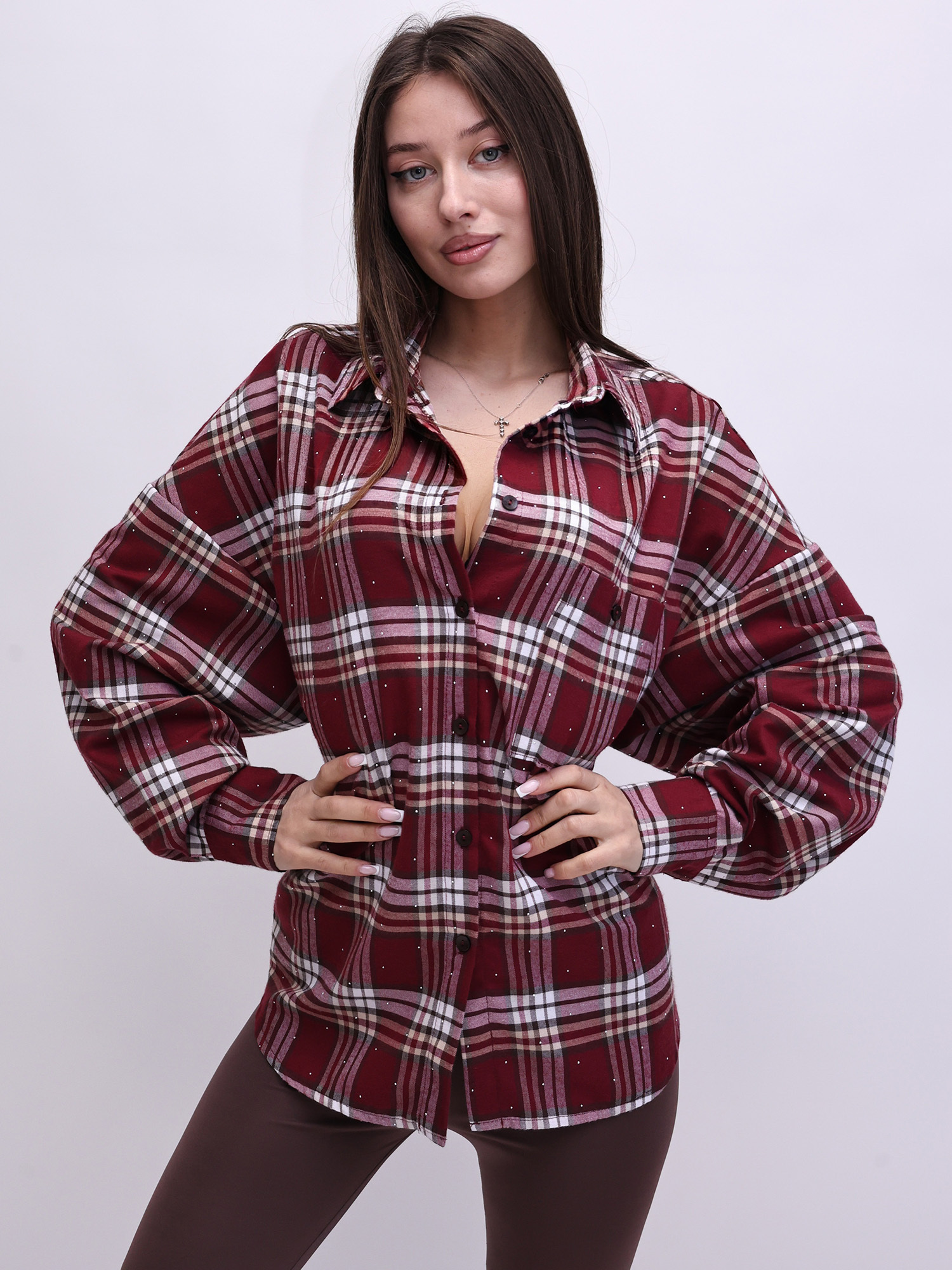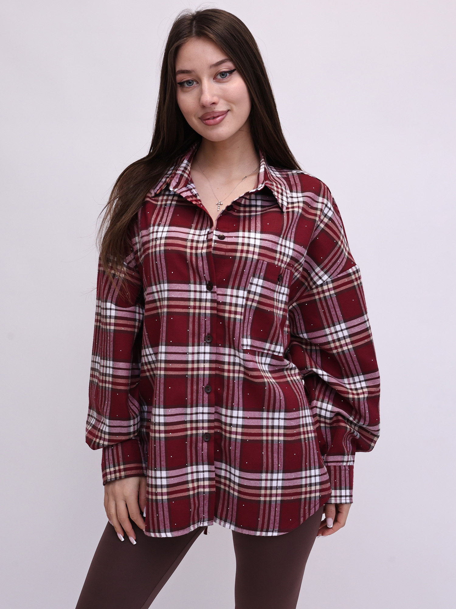 Фланелевая рубашка в клетку со стразами LINGERIE 170863