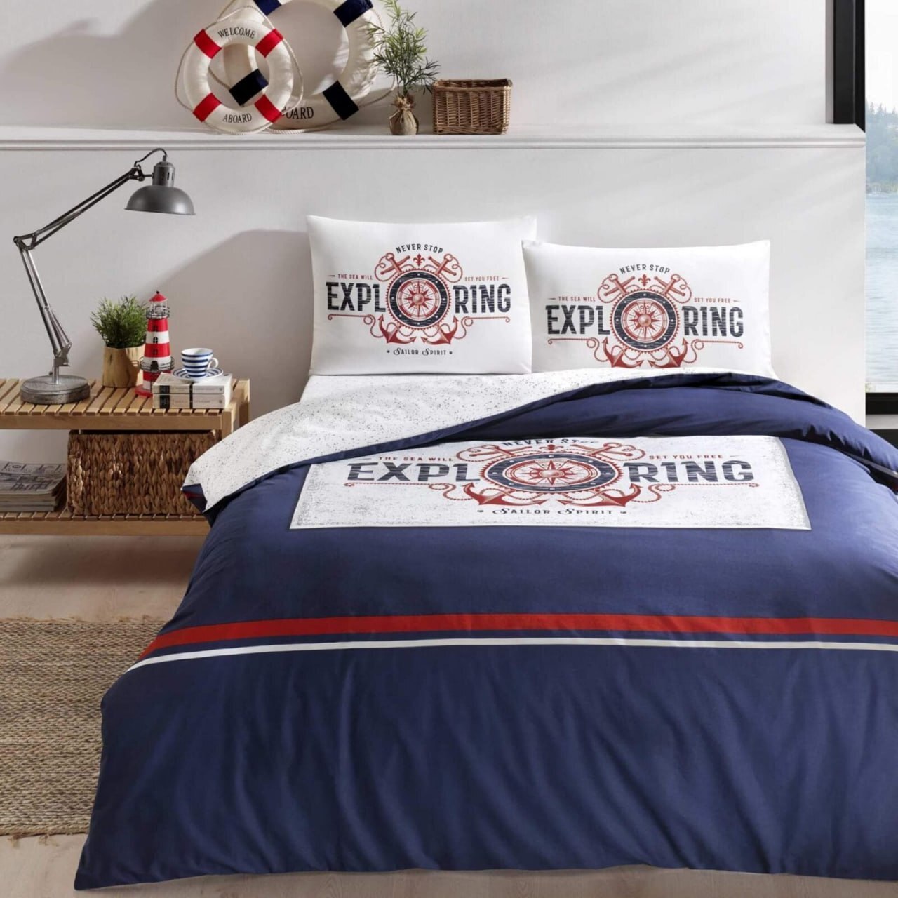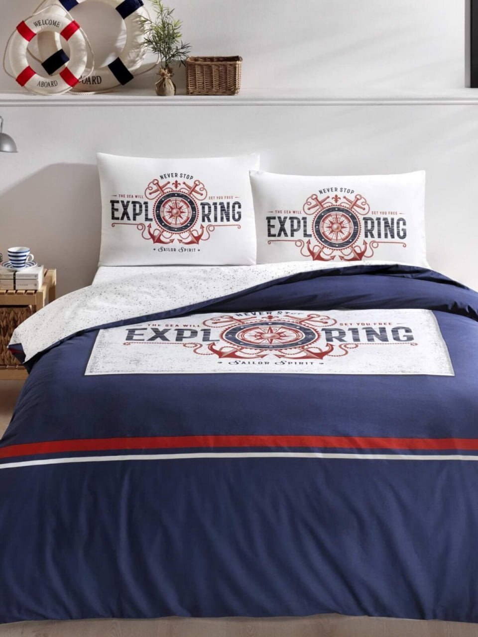 Постільний комплект полуторний TAC Jakar Jonas з простирадлом на гумці і вафельним покривалом
