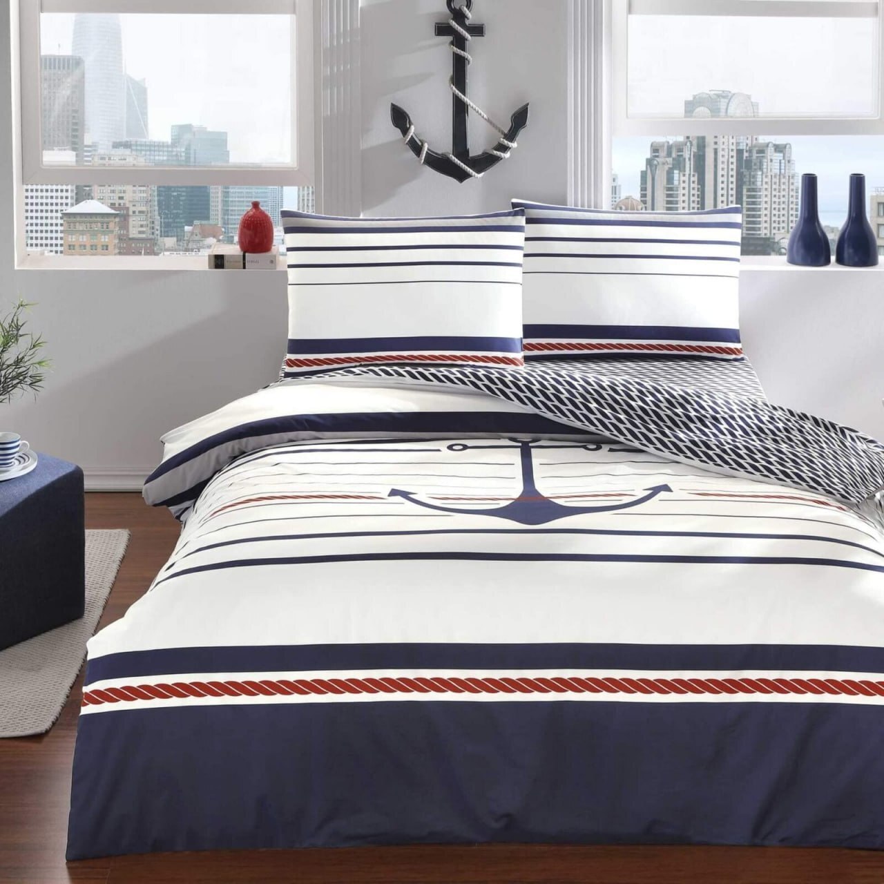 Комплект постільної білизни двоспальний TAC Harbor (ранфорс)