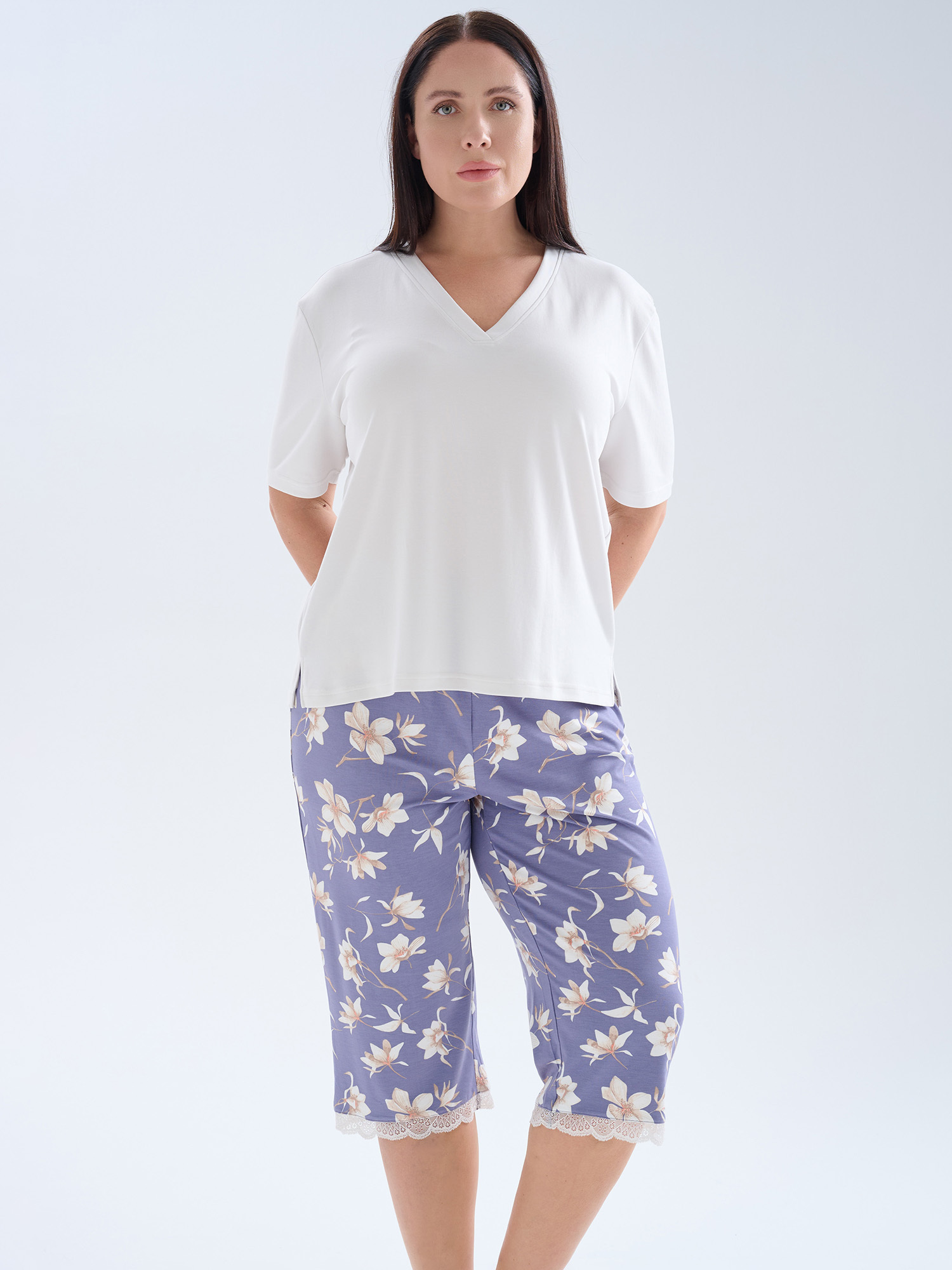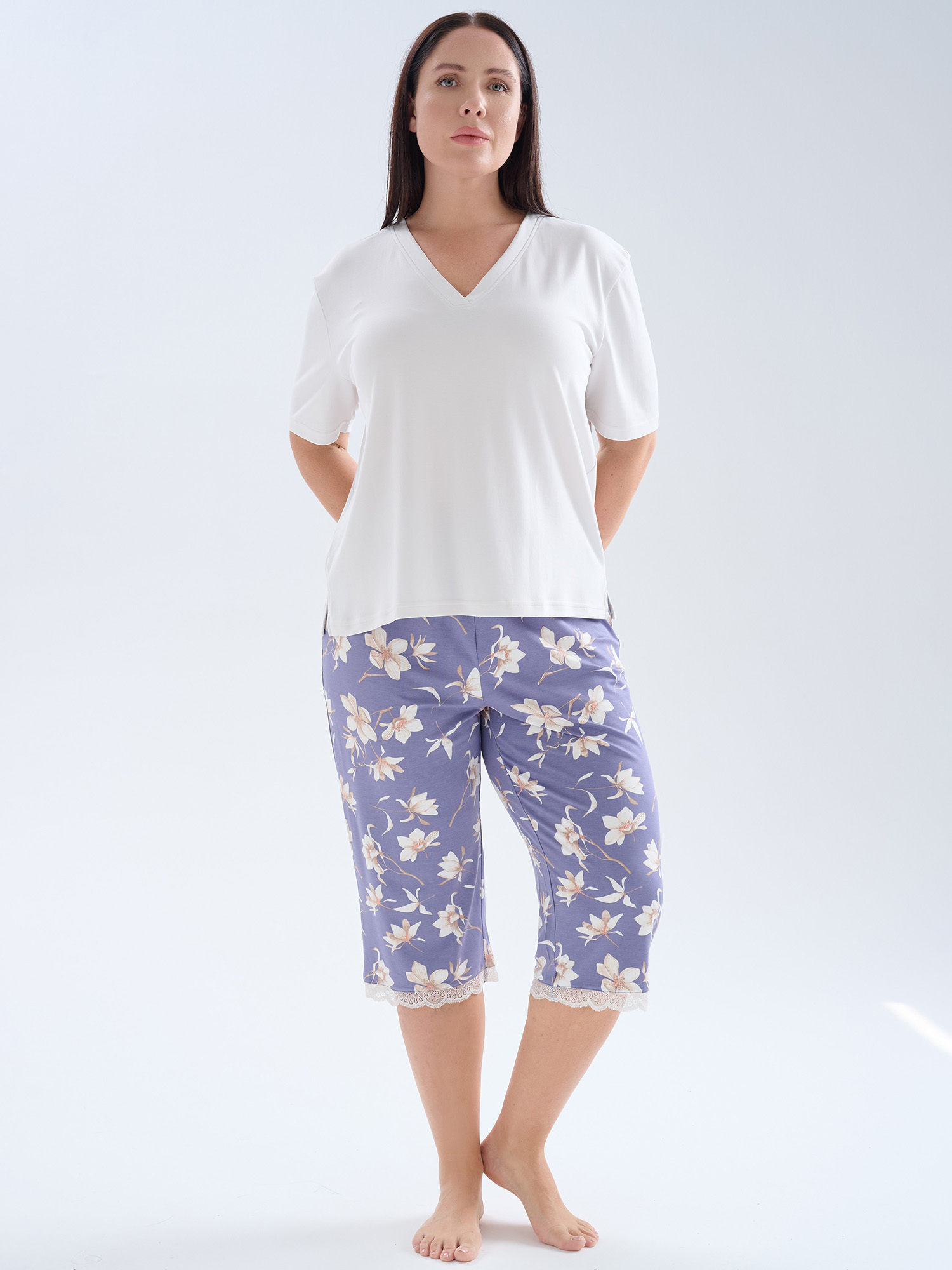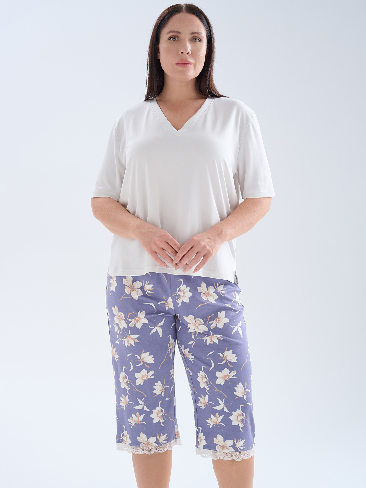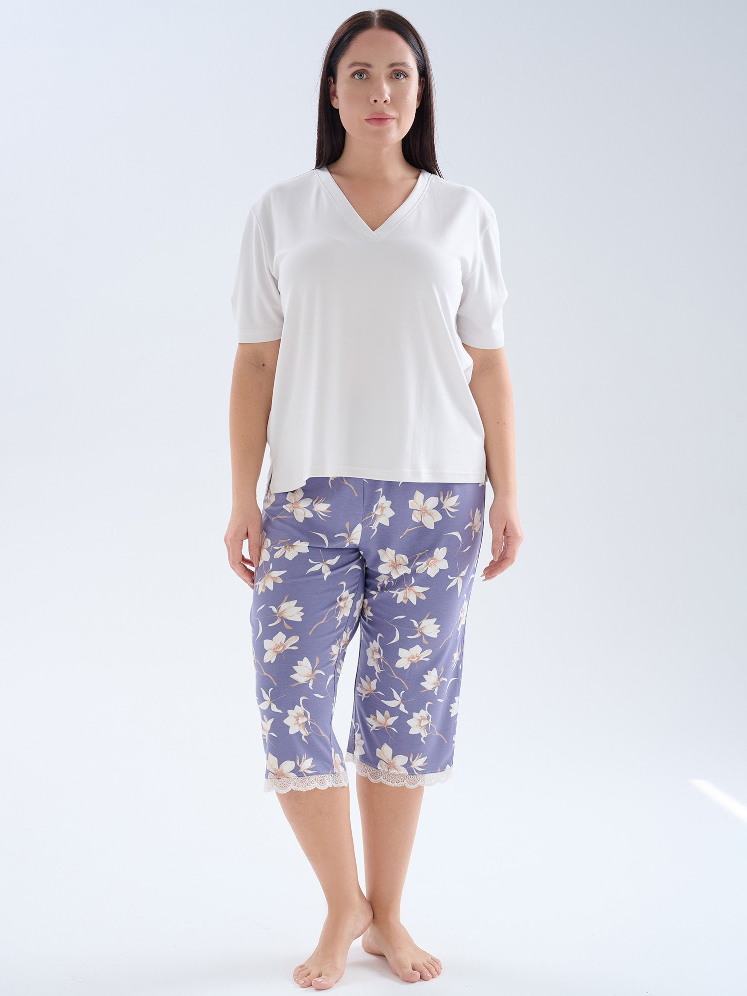 Бавовняний домашній комплект великого розміру з капрі HAYS 62267